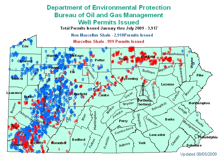 Marcellus Permits Issued & Wells Drilled January-August 2009