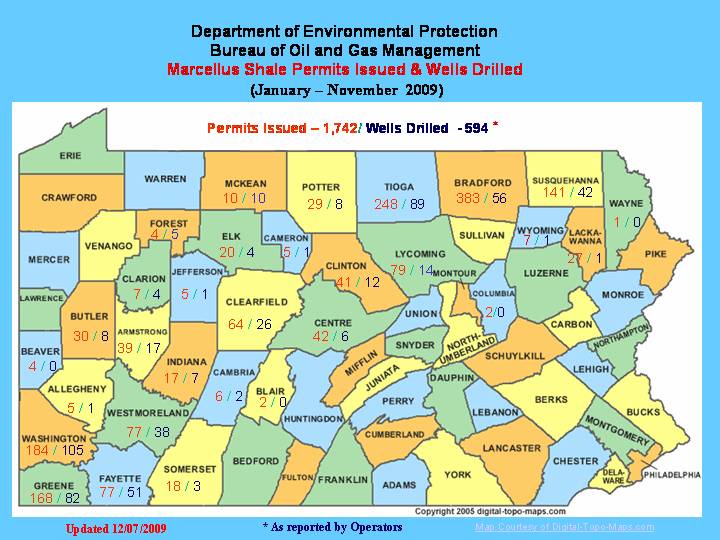Marcellus Permits Issued & Wells Drilled January-July 2009